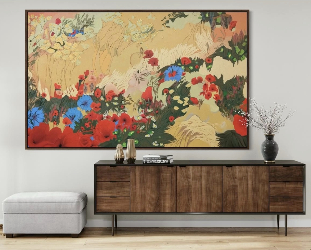 MEADOW, golden frame,330 X 200 CM,acrylic, r.2021, sold
